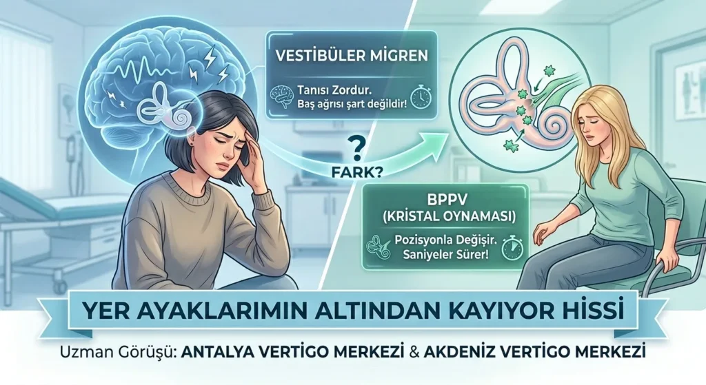 Özellikle Antalya Vertigo Merkezi gibi uzmanlaşmış birimlerde en sık karşılaştığımız iki durum; BPPV (Kristal Oynaması) ve Vestibüler Migrendir. Peki, bu ikisi arasındaki fark nedir ve neden teşhis koymak bu kadar zordur?